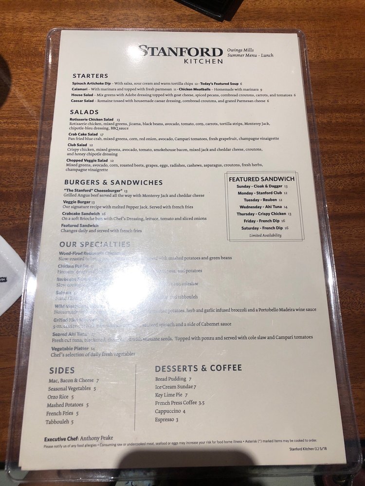 Glenwood's (Stanford Kitchen) Menu